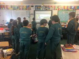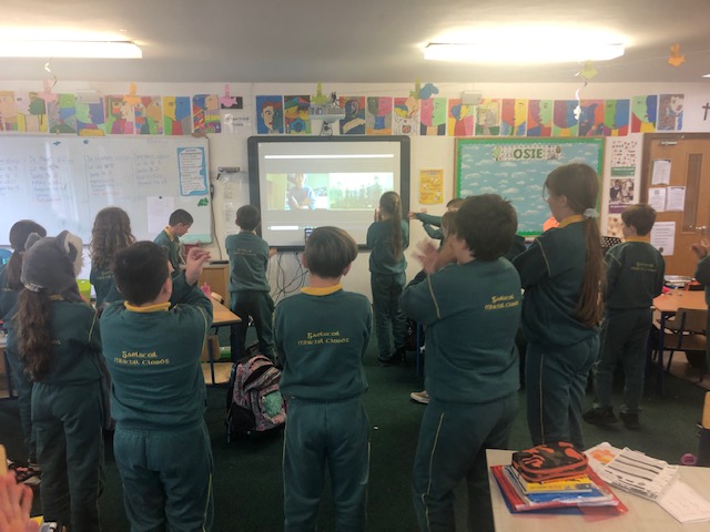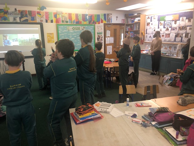 Gach Máirt, déanaimid ceacht ceoil ar Zoom le Claire ó Music Generation. Táimid ag baint an-taitneamh as na ceachtanna seo. Dírímid ar bhuille, rithim agus ar seánraí difriúla agus bíonn cluichí deasa ag Claire chun iad seo a mhúineadh. Cé go bhfuil sé níos deacra ceachtanna a dhéanamh ar Zoom seachas le múinteoir sa rang, tá ag eirí an-mhaith le na ceachtanna agus bíonn an-spraoi againn!