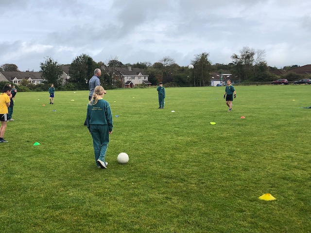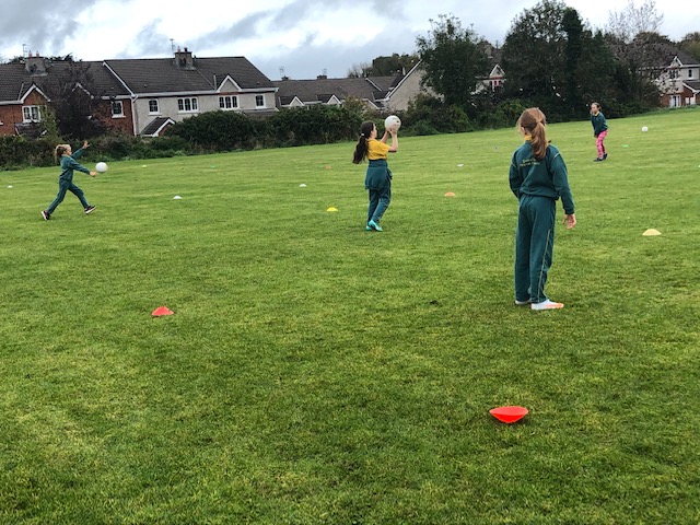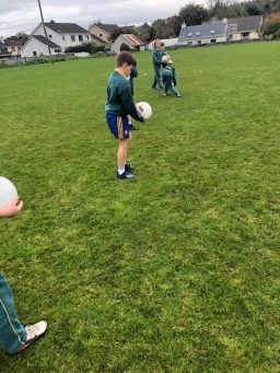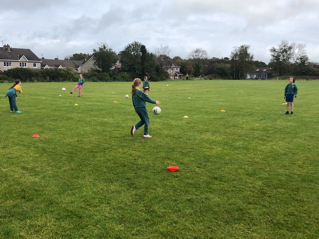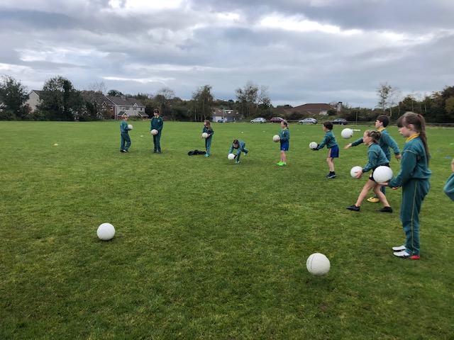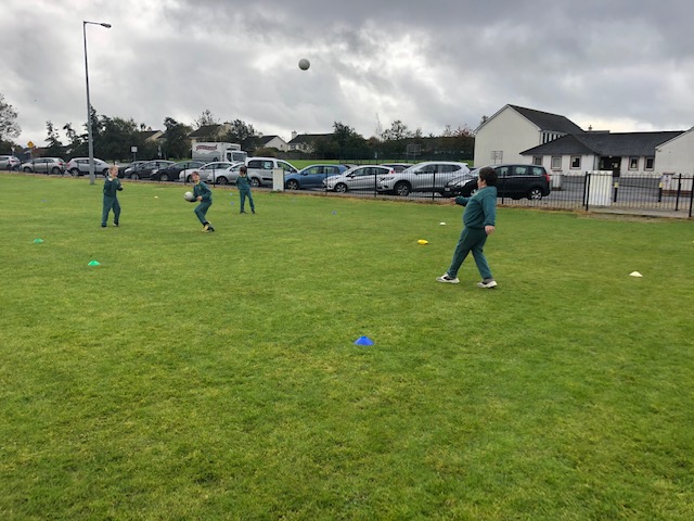 Gach Céadaoin, bíonn ceacht peile againn le Peter Casey sa pháirc. Táimid ag baint an-taitneamh as na ceachtanna, is táimid ag foghlaim an t-uafás, idir rith, preabadh, ciceál, sóló, srl. Tá feabhas tagtha ar gach éinne sa rang ag na scileanna difriúla seo!