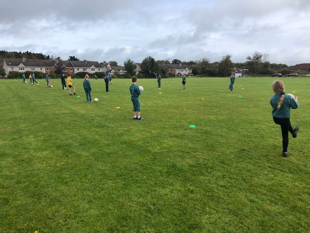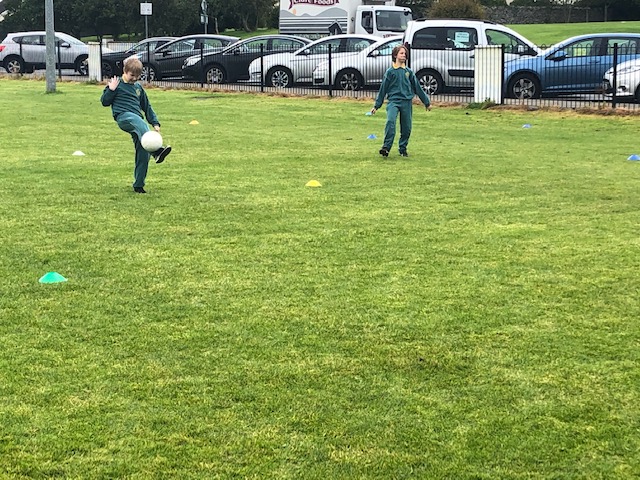 We have been doing Football training sessions with Peter Casey every Wednesday. We are really enjoying these sessions and have been learning an awful lot, between running, bouncing, kicking, soloing, etc. Everyone has made great progress with these skills!