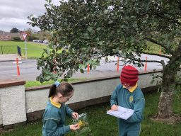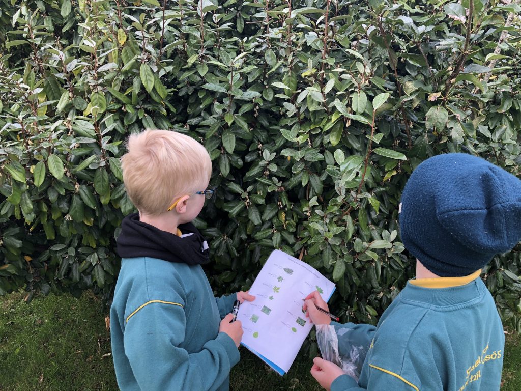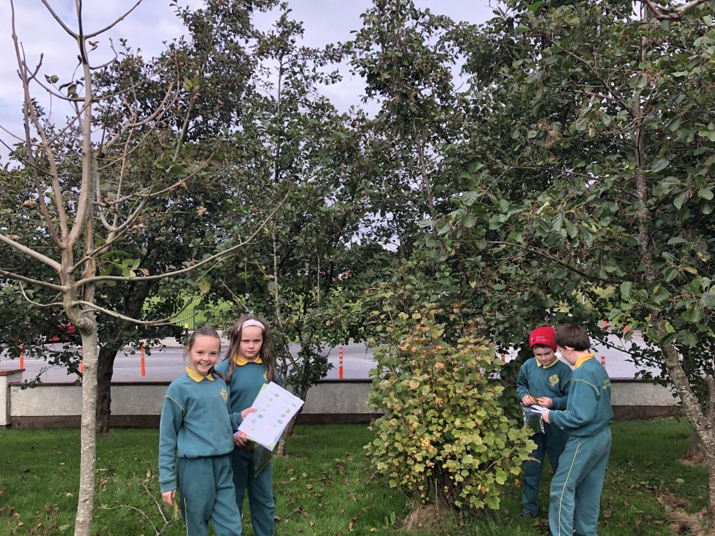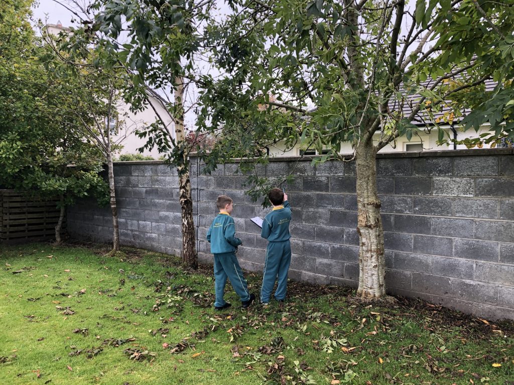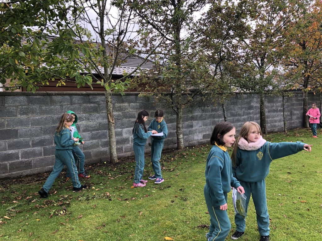 Rang a Trí ag bailiú agus ag anailísiú na duilleoga ar ár gcrainn ar scoil!