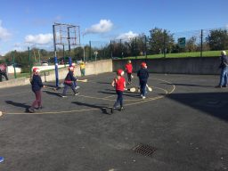 The children of GMC gave our friends from the Isle of Man a hurling and football lesson during the week. Our cousins certainly enjoyed playing our traditional games.