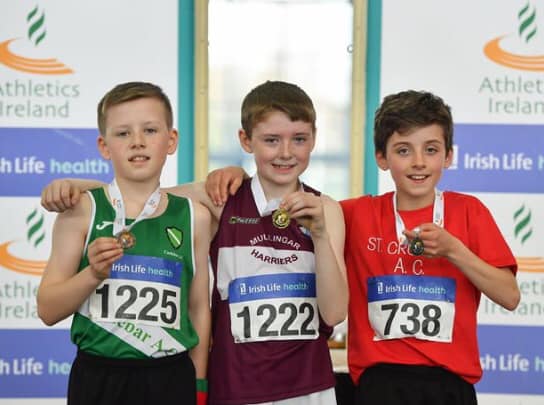 Super News coming from the National Indoors in Athlone, Finn has won Silver in the boys u-12 600m. Massive Congratulations Finn.