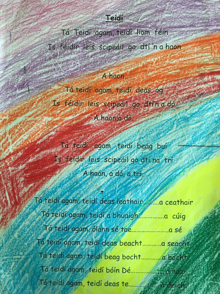 Bigí ag cleachtadh na rímeanna thíos agus tógaigí bhur dtéad scipeála libh ar scoil.