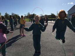 Take a look at the children skipping during break time, using rhymes and rhymes that the children wrote themselves.