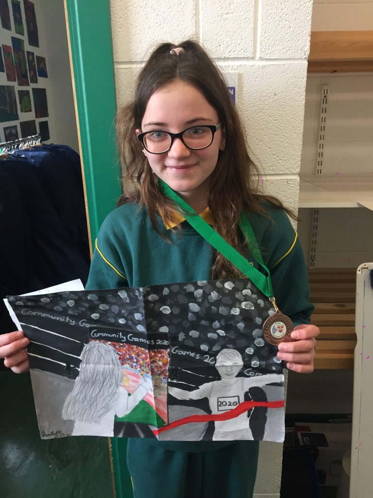 Comhghairdeas le Isabelle as Rang 6 (Ciara) a bhuaigh an 3ú sa chomórtas ealaine Fé 14 sna sna Cluichí Pobal